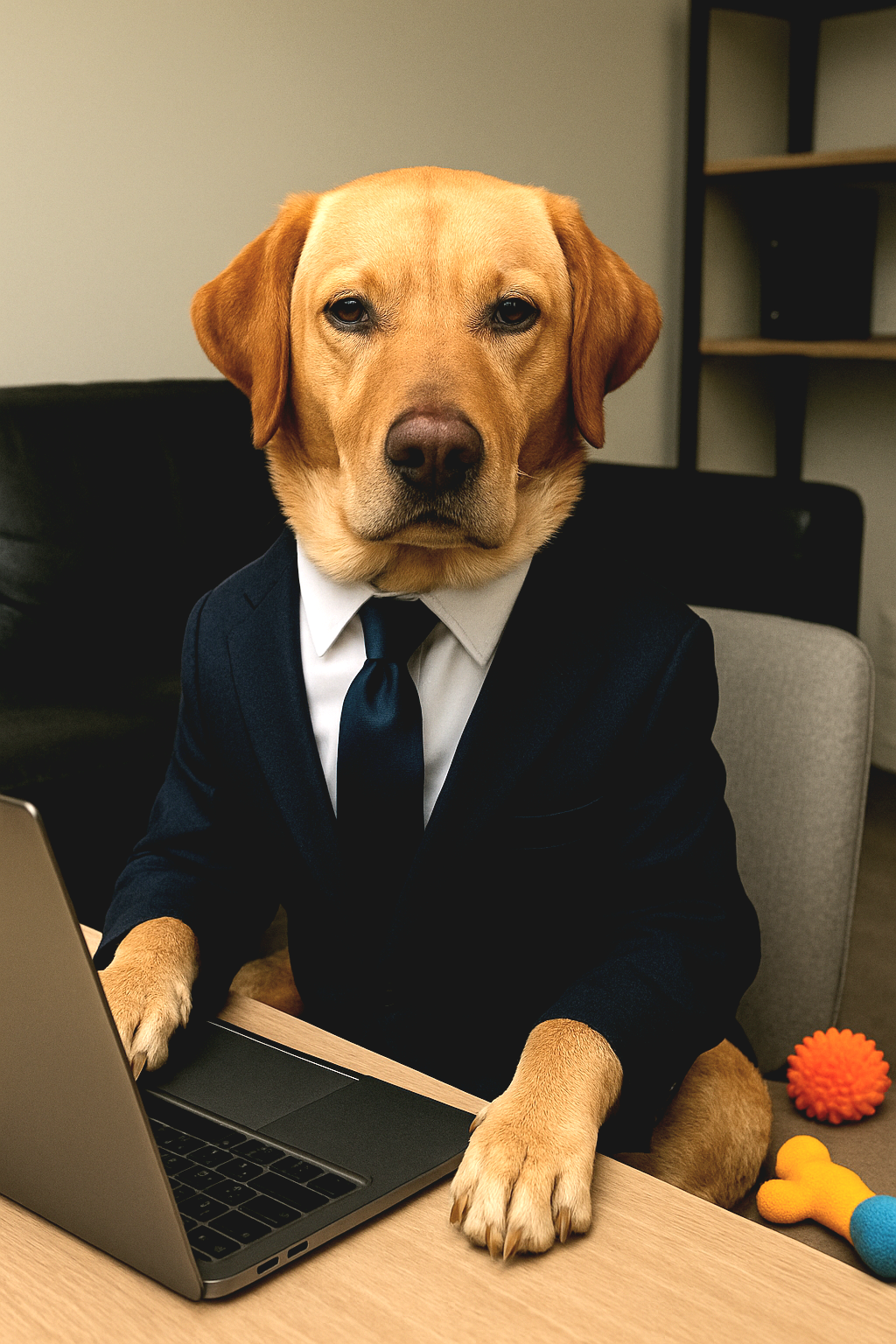 And then there’s me: The Real Boss. I run on naps, sunshine, and a strict policy of barking at cows (don’t question it). I keep team morale high and priorities in order: snacks, joy, then work.